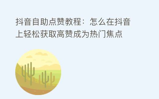 抖音自助点赞教程:怎么在抖音上轻松获取高赞成为热门焦点