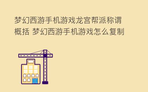 梦幻西游手机游戏龙宫帮派称谓概括 梦幻西游手机游戏怎么复制自己打出的文字