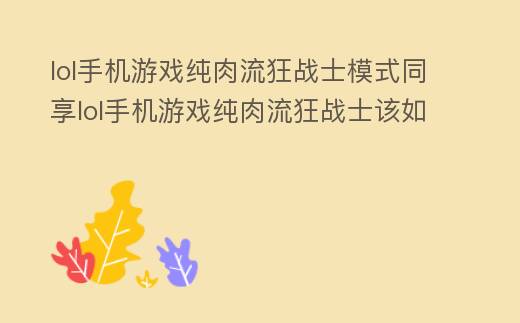 lol手机游戏纯肉流狂战士模式同享lol手机游戏纯肉流狂战士该如何玩 英雄联盟手游最肉的英雄
