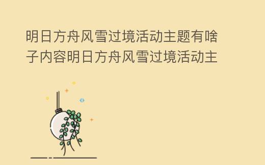 明日方舟风雪过境活动主题内容丰富多样,通过合理规划与攻略使用,玩家能够在活动主题中获取丰厚的奖励与良好的游戏体验,提高自己的游戏实力。