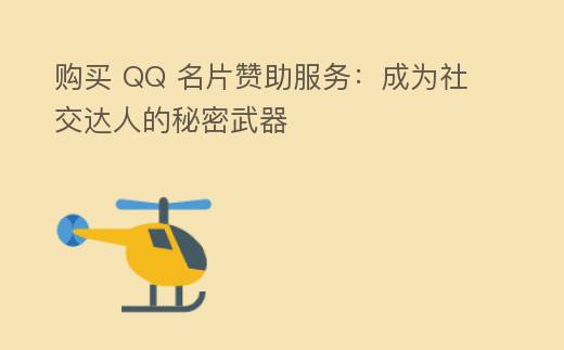 购买 QQ 名片赞助服务是一种创新的社交方法,它为大家提供了更多展示自我、拓展社交圈的机会,不妨试试一下,让你的 QQ 名片成为社交舞台上的亮点,开启一段精彩的社交之旅,就像今年有很多人挑选购买 QQ 名片赞助服务,来提高自己的社交魔力,你也可以加入其中,成为社交达人!