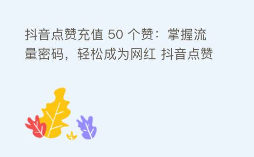 抖音点赞充值 50 个赞:掌握流量密码,轻松成为网红 抖音点赞充值入口在哪里