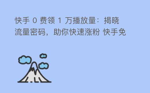快手 0 费领 1 万播放量:揭晓流量密码,助你快速涨粉 快手免费领钱