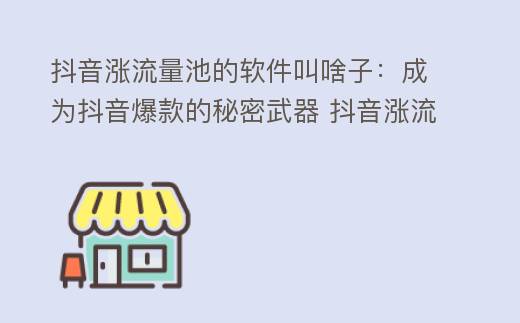 抖音涨流量池的软件叫啥子:成为抖音爆款的秘密武器 抖音涨流量池的软件叫什么