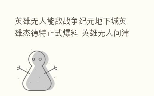 英雄无人能敌战争纪元地下城英雄杰德特正式爆料 英雄无人问津,网红人尽皆知