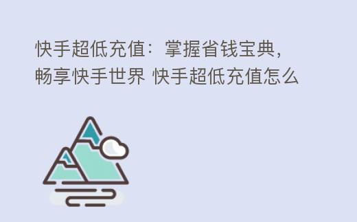 在当今数字化的时代,短视频平台成为了人们娱乐与获得信息的重要渠道之一,快手,作为备受欢迎的短视频平台,吸引了无数用户的关注与参加,而在运用快手的过程中,“快手超低充值”这一话题也引起了广大用户的兴趣与讨论。