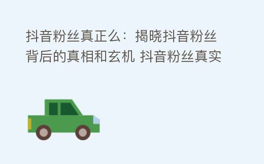 摘要:在当今这个数字化的时代,抖音作为一款热门的短视频应用,吸引了无数用户的关注和参与,一个备受争议的问题始终萦绕在人们心头:抖音粉丝真实么?要探讨这个问题,我们首先...,抖音粉丝真正么:揭晓抖音粉丝背后的真相和玄机 抖音粉丝真实么