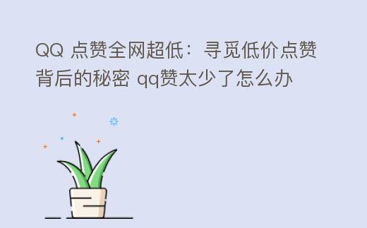 摘要:在当今的社交网络时代,QQ点赞已经成为了一种常见的社交互动方式,而“QQ点赞全网最低”这一现象更是引起了广泛的关注和讨论。为什么会出现QQ点赞全网最低的...,QQ 点赞全网超低:寻觅低价点赞背后的秘密 qq赞太少了怎么办