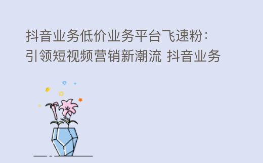 抖音业务低价业务平台飞速粉:引领短视频营销新潮流 抖音业务低价业务平台h8z碘net全天平台
