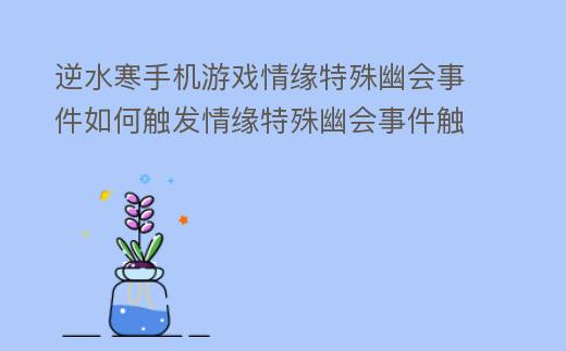 逆水寒手机游戏情缘特殊幽会事件如何触发情缘特殊幽会事件触发方式 逆水寒手机游戏可以赚钱吗