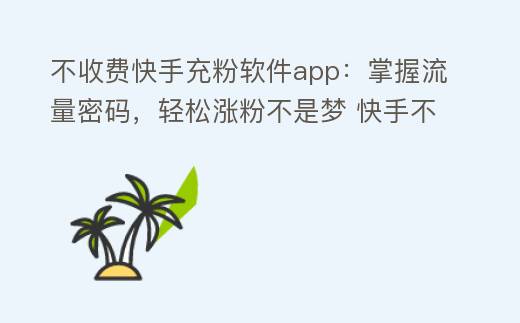 不收费快手充粉软件app:掌握流量密码,轻松涨粉不是梦 快手不花钱能涨粉吗