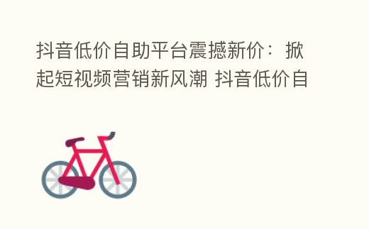 抖音低价自助平台震撼新价:掀起短视频营销新风潮 抖音低价自助平台怎么样
