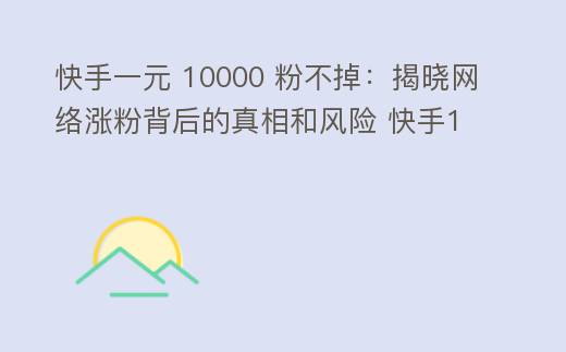 快手一元 10000 粉不掉:揭晓网络涨粉背后的真相和风险 快手1元多少币