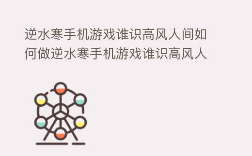 逆水寒手机游戏谁识高风人间如何做逆水寒手机游戏谁识高风人间任务 逆水寒手机游戏怎么样