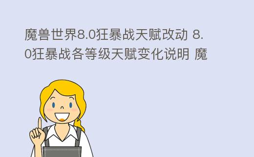 根据魔兽世界8.0狂暴战天赋改动,我将为您详细说明8.0狂暴战各等级天赋的变化,并在文末加入相关问题的回答,以及进行相关的集合。