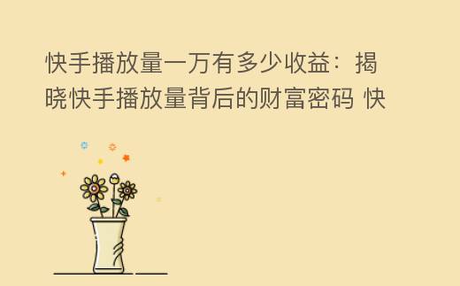 快手播放量一万有多少收益:揭晓快手播放量背后的财富密码 快手播放量一万算热门吗