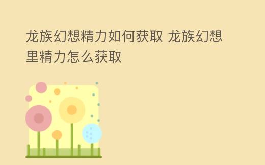 龙族幻想精力如何获取 龙族幻想里精力怎么获取
