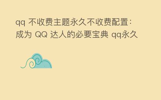 qq 不收费主题永久不收费配置:成为 QQ 达人的必要宝典 qq永久免费的主题