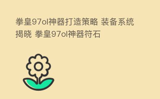 在拳皇 97ol 的世界中,想要在战斗中脱颖而出,神器打造与对装备系统的深入知道是至关重要的。