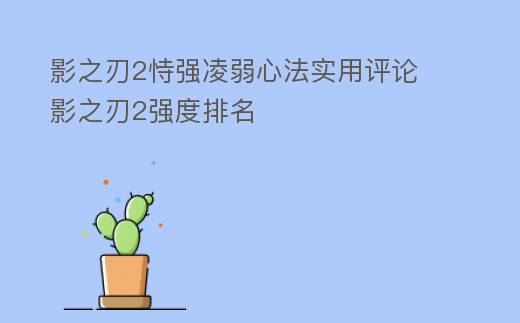 影之刃2恃强凌弱心法实用评论 影之刃2强度排名