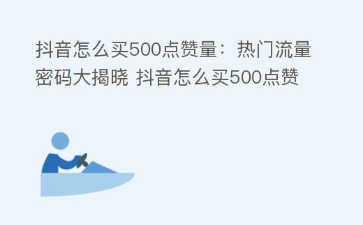 抖音怎么买500点赞量:热门流量密码大揭晓 抖音怎么买500点赞的东西