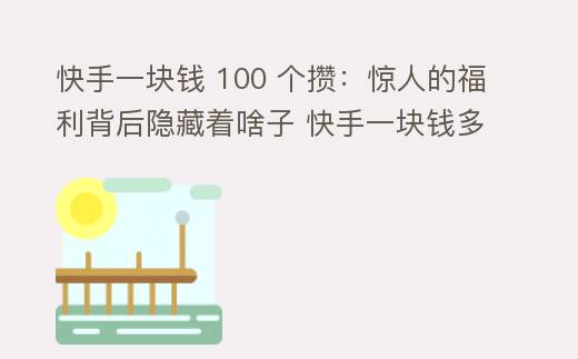 快手一块钱 100 个攒:惊人的福利背后隐藏着啥子 快手一块钱多少分
