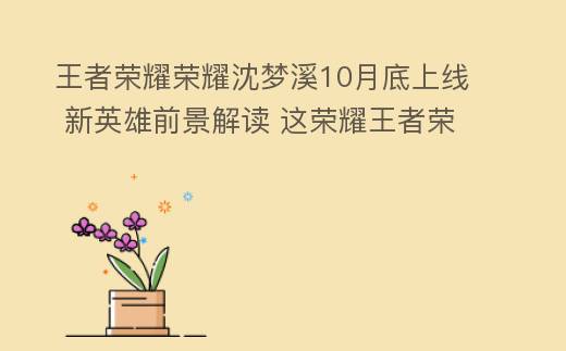 王者荣耀荣耀沈梦溪10月底上线 新英雄前景解读 这荣耀王者荣耀