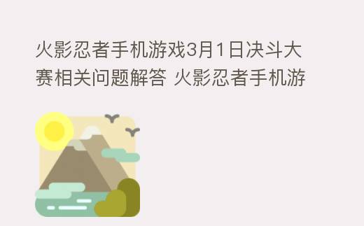 火影忍者手机游戏3月1日决斗大赛相关问题解答 火影忍者手机游戏破解版