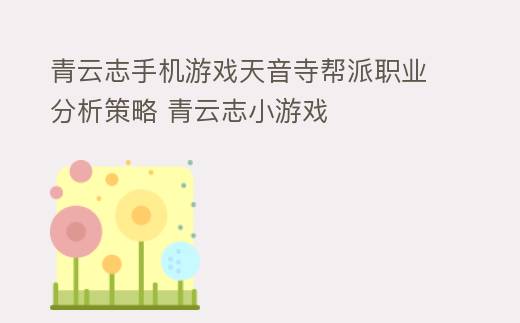 在青云志手机游戏中,天音寺帮派以其独特的定位与强大的技能,成为了众多玩家的挑选之一。今日,就让大家一下天音寺这个帮派职业,帮助我们更好地知道并玩转它。