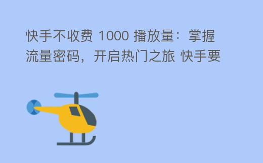 快手不收费 1000 播放量:掌握流量密码,开启热门之旅 快手要花钱吗