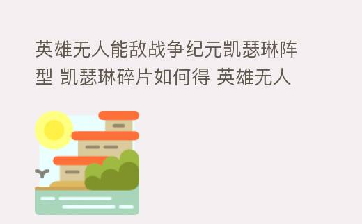 英雄无人能敌战争纪元凯瑟琳阵型 凯瑟琳碎片如何得 英雄无人问津