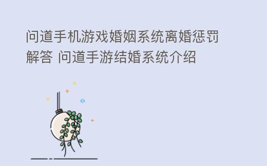希望以上内容能为问道手机游戏的玩家们在理解婚姻系统离婚惩罚方面提供一些帮助。