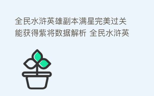 在全民水浒这款热门网络游戏中,英雄副本的满星完美过关对于玩家来说具有重要意义。而通过对英雄副本满星完美过关获得紫将的数据解析,大家可以更清晰地知道其中的规律与特征。