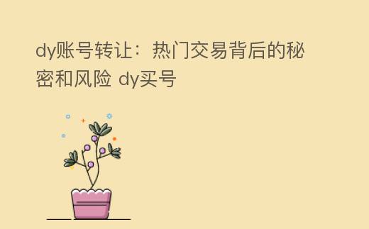 在当今数字化的时代,社交媒体平台成为了人们展示自我、探讨互动的重要场所,抖音(DY)作为一款备受欢迎的短视频平台,拥有着庞大的用户群体与极高的活跃度,随之而来的是“DY 账号转让”这一现象的逐渐兴起,这一热门交易背后到底隐藏着怎样的秘密和风险呢?
