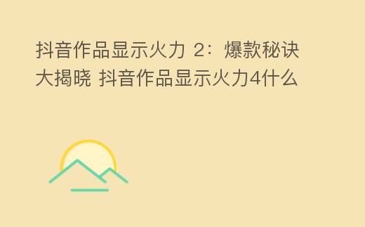 抖音作品显示火力 2:爆款秘诀大揭晓 抖音作品显示火力4什么意思