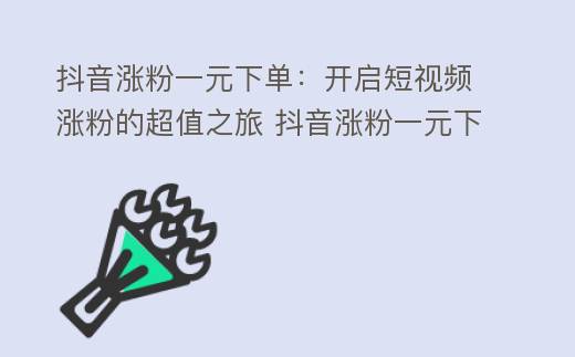 抖音涨粉一元下单:开启短视频涨粉的超值之旅 抖音涨粉一元下单可靠吗