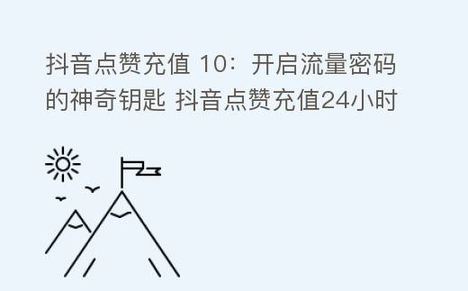 抖音点赞充值 10:开启流量密码的神奇钥匙 抖音点赞充值24小时到账