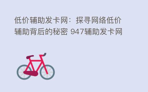 低价辅助发卡网:探寻网络低价辅助背后的秘密 947辅助发卡网