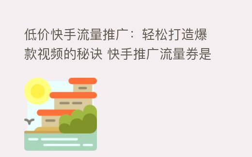 低价快手流量推广:轻松打造爆款视频的秘诀 快手推广流量券是免费的吗