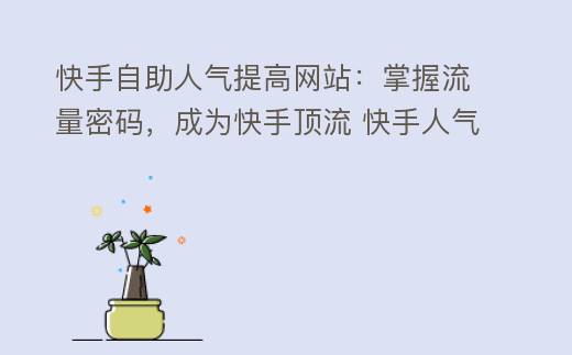 快手自助人气提高网站:掌握流量密码,成为快手顶流 快手人气助力在哪里