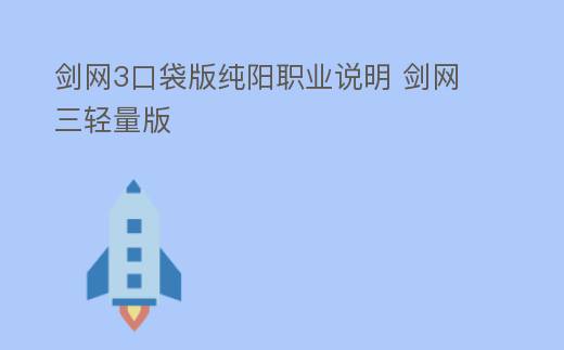 剑网3口袋版纯阳职业说明 剑网三轻量版
