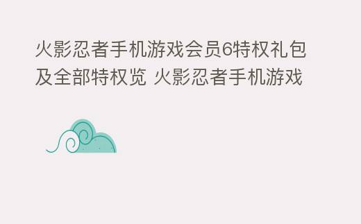 亲爱的玩家们,欢迎来到火影忍者手机游戏的会员6特权世界!在这个神奇的游戏世界里,会员6特权礼包及全部特权览将为你们带来前所未有的游戏体验!
