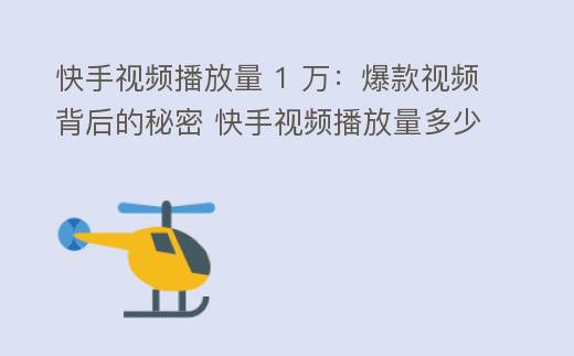 希望以上的解析与提议能够对你有所帮助,让你的快手视频在追求 1 万播放量的道路上更进一步!