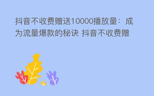 抖音不收费赠送10000播放量:成为流量爆款的秘诀 抖音不收费赠送的礼物
