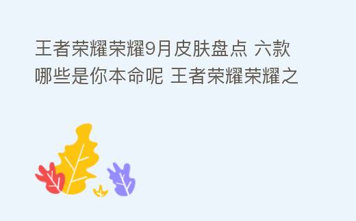 在王者荣耀荣耀的 9 月,众多精彩皮肤纷纷登场,为玩家们带来了一场视觉盛宴。下面就让大家一起来盘点一下这六款皮肤,看看哪些会成的本命呢?