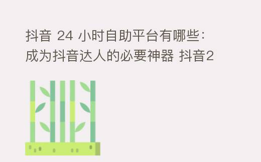 抖音 24 小时自助平台有哪些:成为抖音达人的必要神器 抖音24小时自助平台有哪些