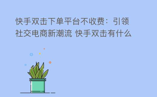 快手双击下单平台不收费:引领社交电商新潮流 快手双击有什么用处