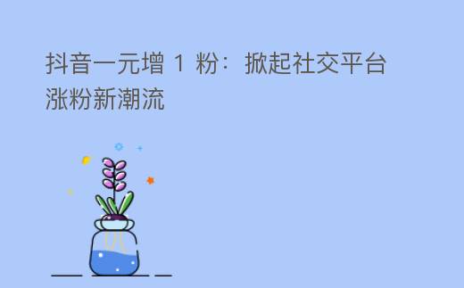 在当今社交媒体盛行的时代,抖音无疑成为了最受欢迎的平台之一,而“抖音一元增 1 粉”这一现象,正以惊人的速度在网络上掀起一股新的潮流。