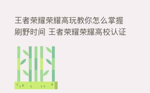 王者荣耀荣耀高玩教你怎么掌握刷野时间 王者荣耀荣耀高校认证