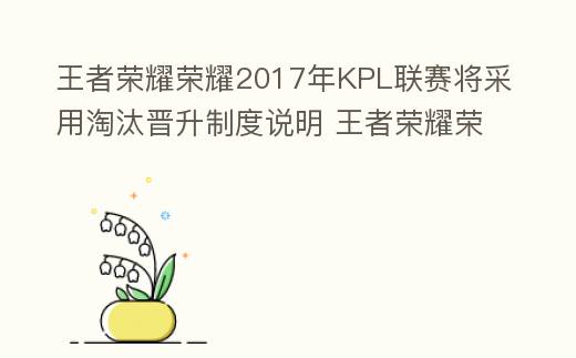 王者荣耀荣耀2017年KPL联赛将采用淘汰晋升制度说明 王者荣耀荣耀20级会匹配到30级?